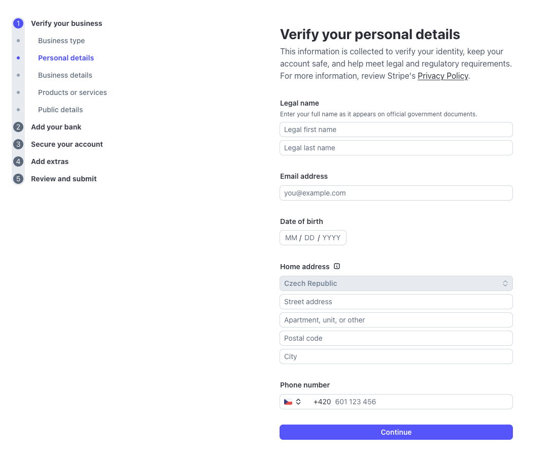 Pro sběr plateb využíváme platební bránu Stripe, proto je pro používání platformy Repetiv nutné vytvořit si účet zde.